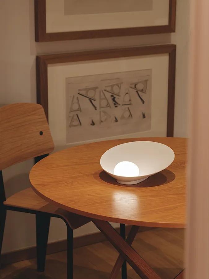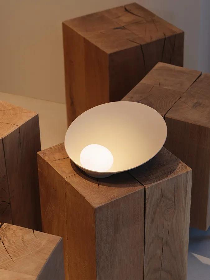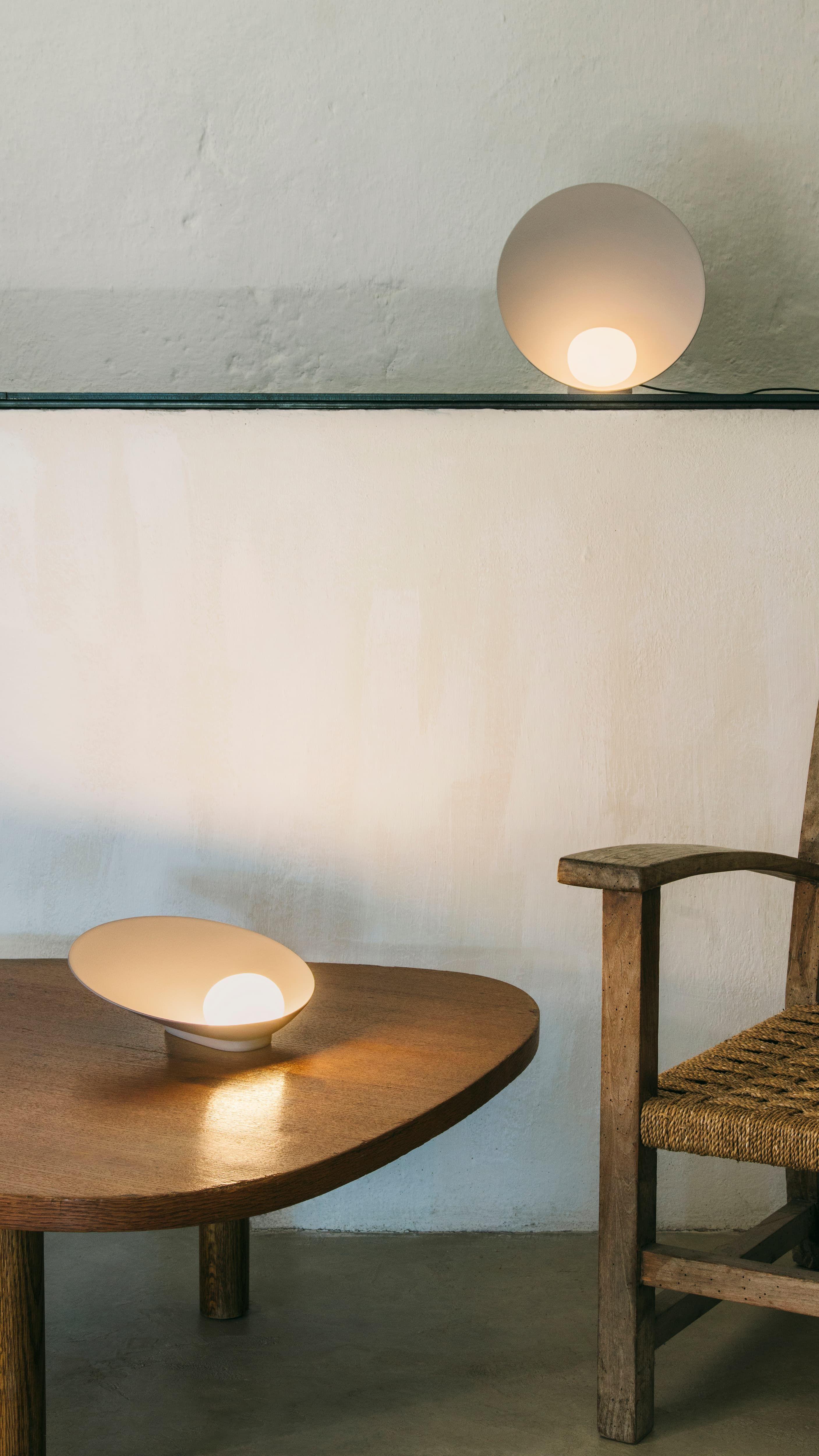 As a table lamp, Musa rests on an aluminum base tucked behind the body so as not to disrupt the organic design. As with other objects, this collection transcends its practical function.