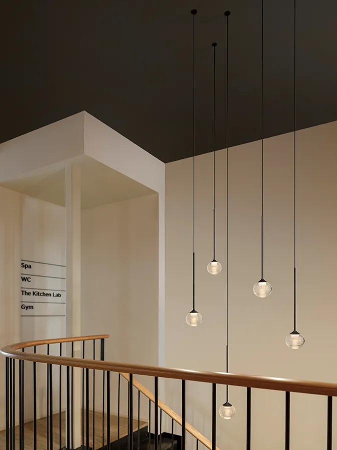Its mouth-blown glass spheres, suspended in the air, evoke luminous constellations that lend a poetic and sophisticated touch. This collection offers a versatile solution for designing tailored atmospheres, adapting to both residential and public spaces.