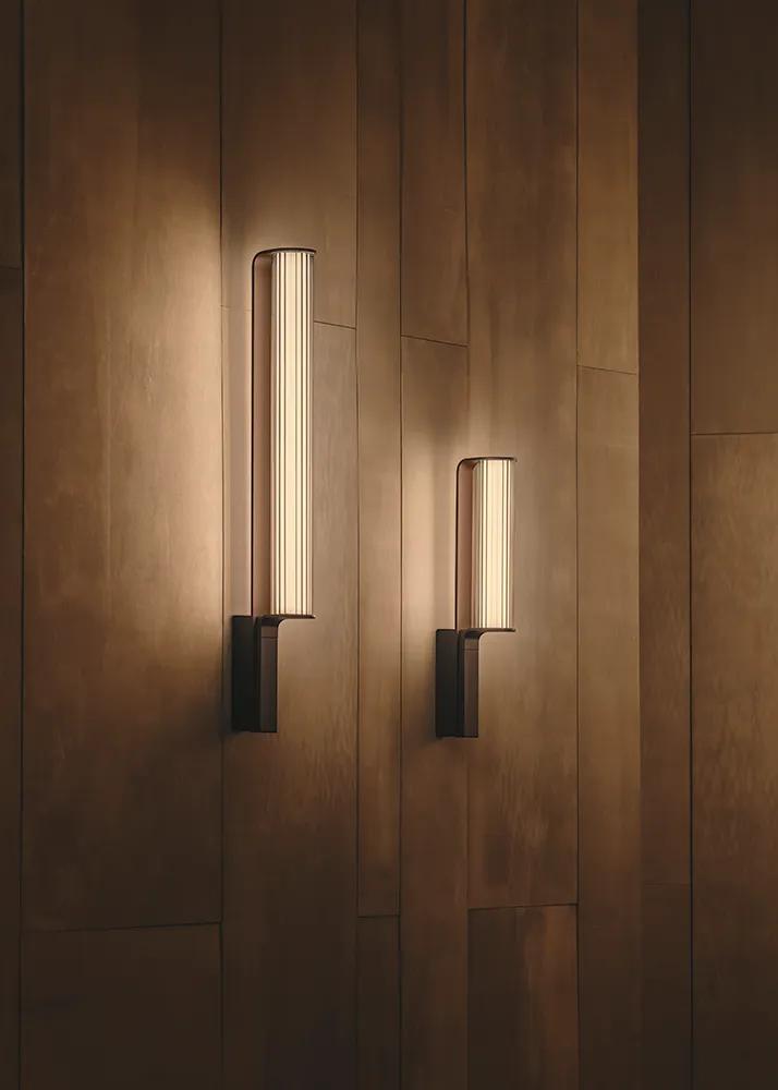 Sleek and timeless, the refined silhouette of Class wall luminaire smoothly collides with a striking study in materiality, while radiating with an inviting, warm glow.