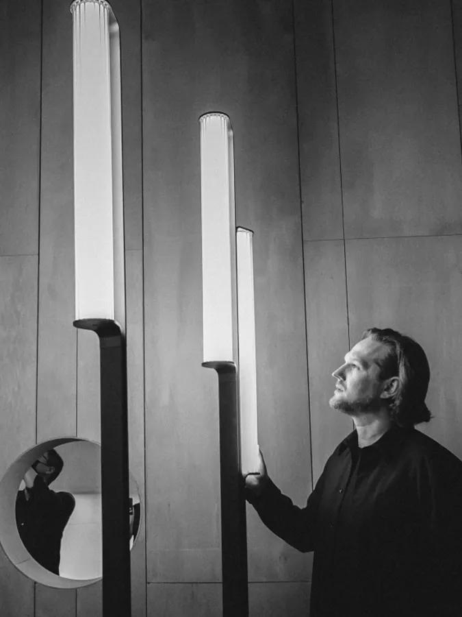 “The delicate glass tube’s structure is reminiscent of sun rays, spreading the light in a soft patterned way.” - Sebastian Herkner