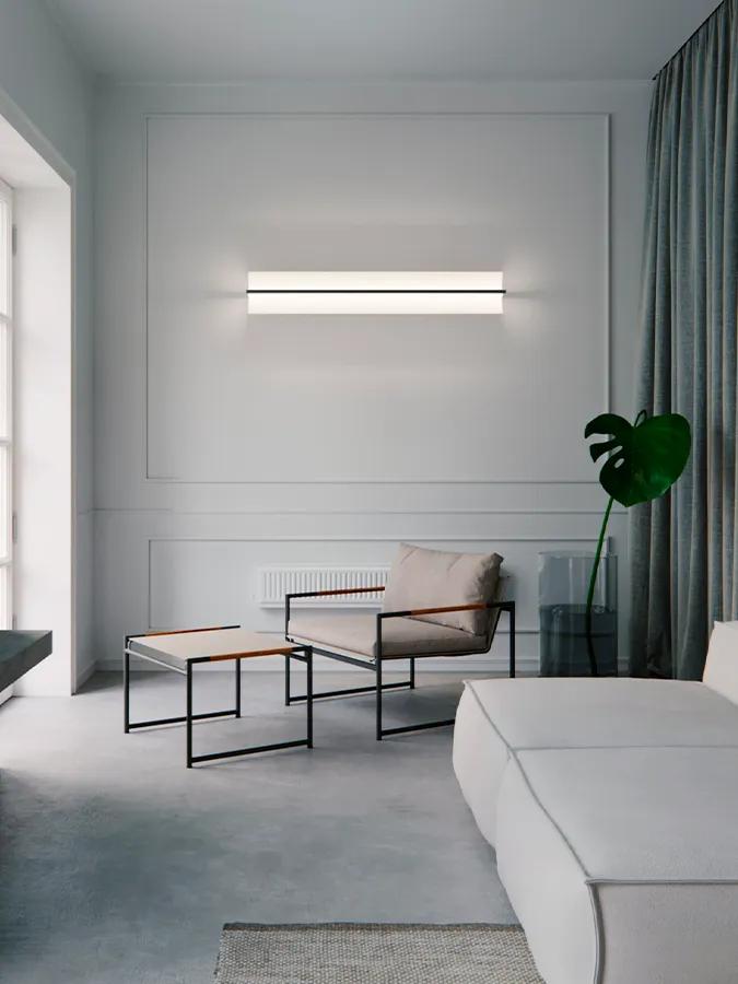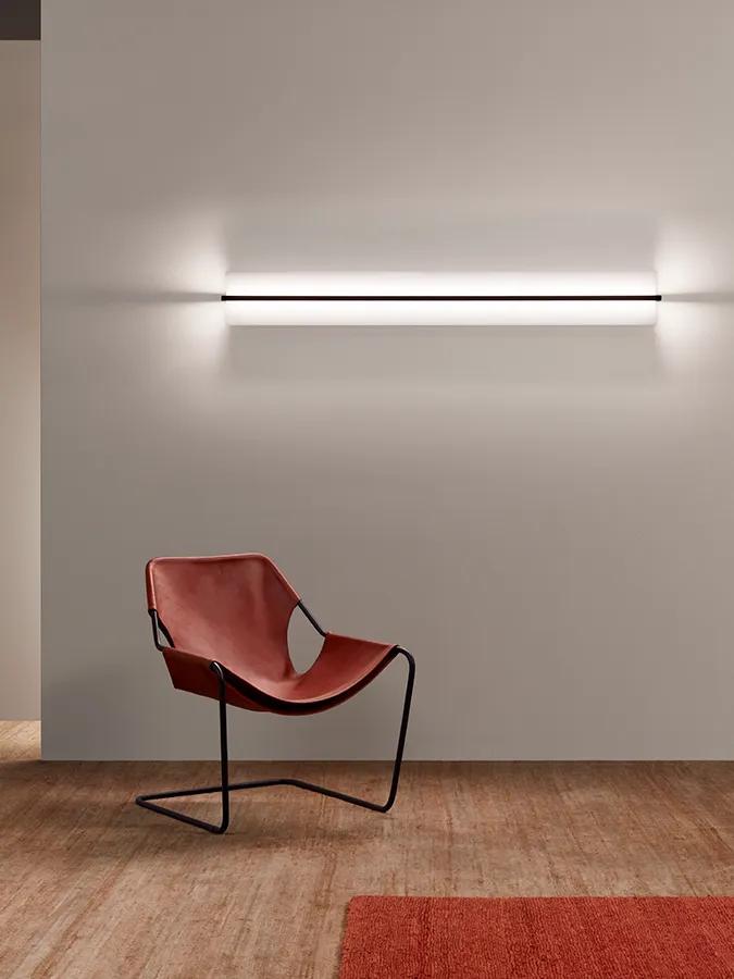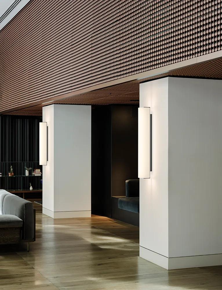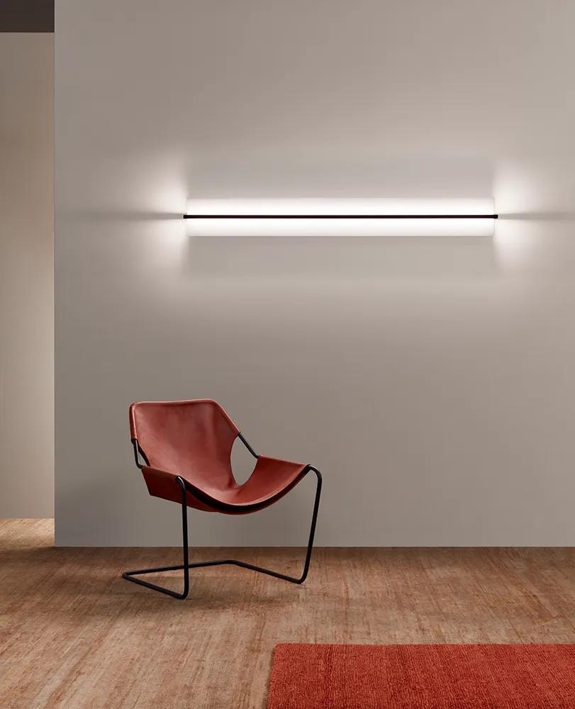 The Kontorno wall luminaire frames illumination within a black contour of pure simplicity, integrating elegantly into the architecture.