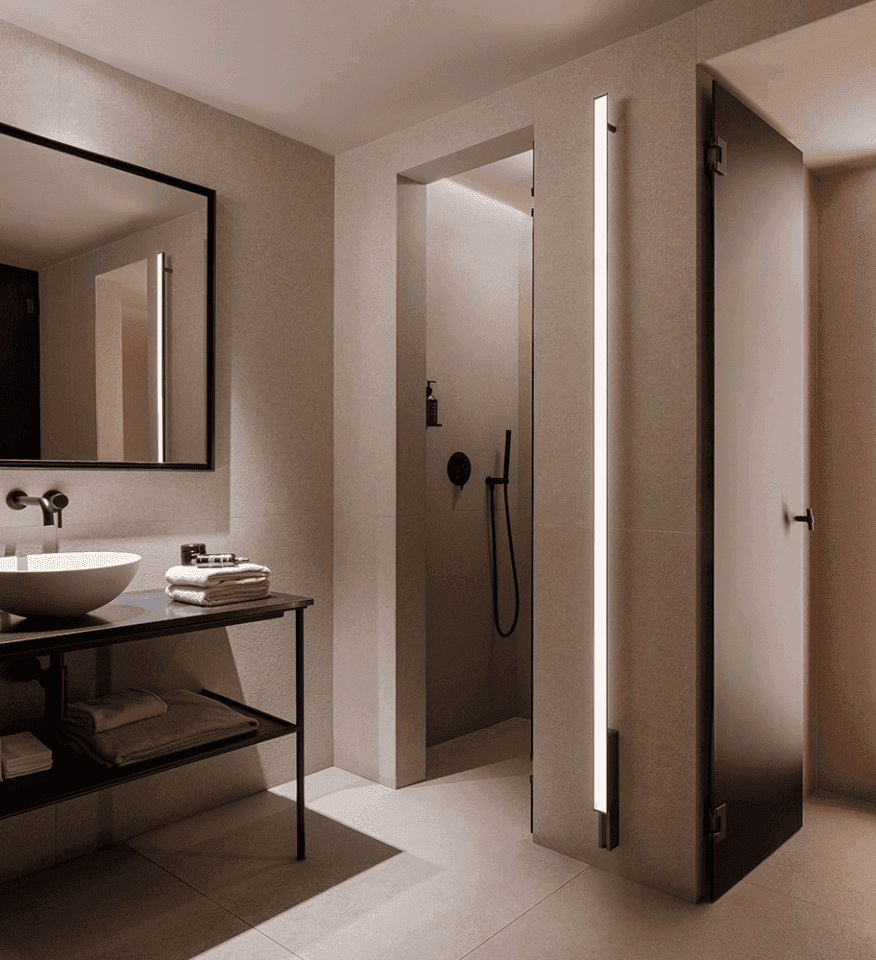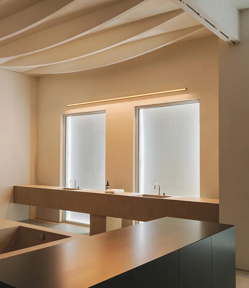 Refined in form, the Spa wall sconce offers a linear LED solution that allows complete compositional freedom to create a wide range of atmospheres—from intimate nooks designed for personal wellbeing to functional spaces focused on overall comfort.